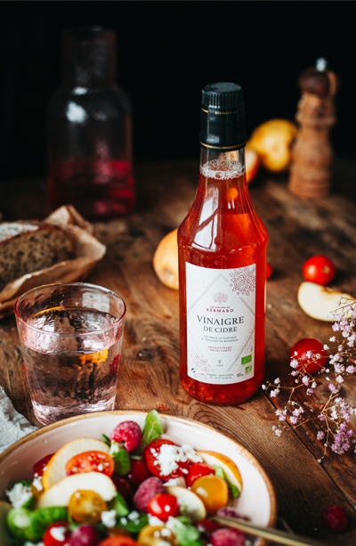 Les Vergers de Kermabo vous propose une large gamme de produits fabriqués a base de pomme. On retrouve notamment deux sortes de cidre : un cidre fermier et un cidre Guillevic fait a partir de la pomme de Guillevic, une variété emblématique de Bretagne. Ils proposent également un pommeau, assembler avec de l’eau de vie de cidre et du jus de pomme, qu’ils commercialisent également seul. Il propose aussi un produit issus d’une fermentation totale où les sucres de la pomme se sont transformés en alcool, il existe deux sortes de cette alcool a 70° : La Fine Bretagne Blanche et La Fine Bretagne Ambrée. Les Verger de Kermabo proposent aussi du vinaigre de cidre qui est très riche en saveurs et en bienfaits il apporte du caractère aux plats.